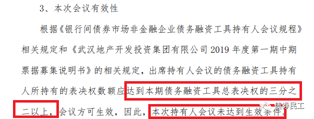4、2021年3月16日,“”第一次持有人會(huì)議的持有人所持有的表決權(quán)數(shù)額未達(dá)到本期債務(wù)融資工具總表決權(quán)的三分之二以上,持有人會(huì)議無(wú)效。主承銷商在3月19日也公告,