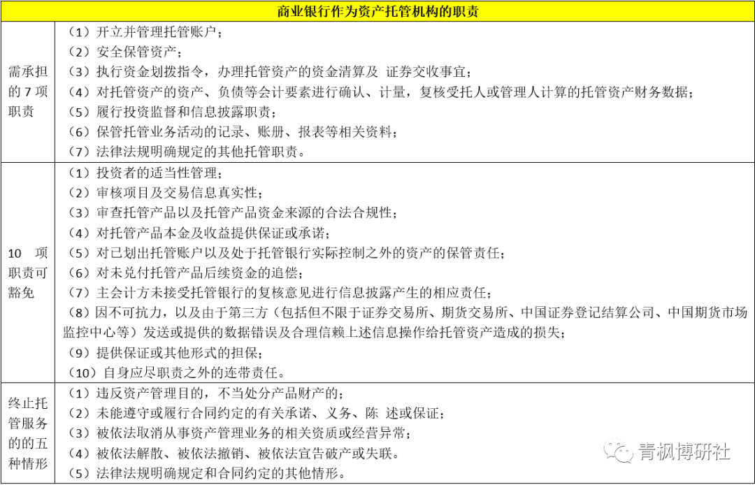 3、托管機構并不僅僅局限于商業銀行,還包括中國理財信息登記托管中心、中證登以及監管機構認可的機構等。