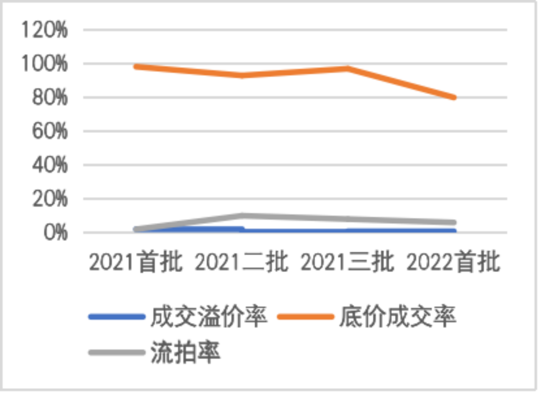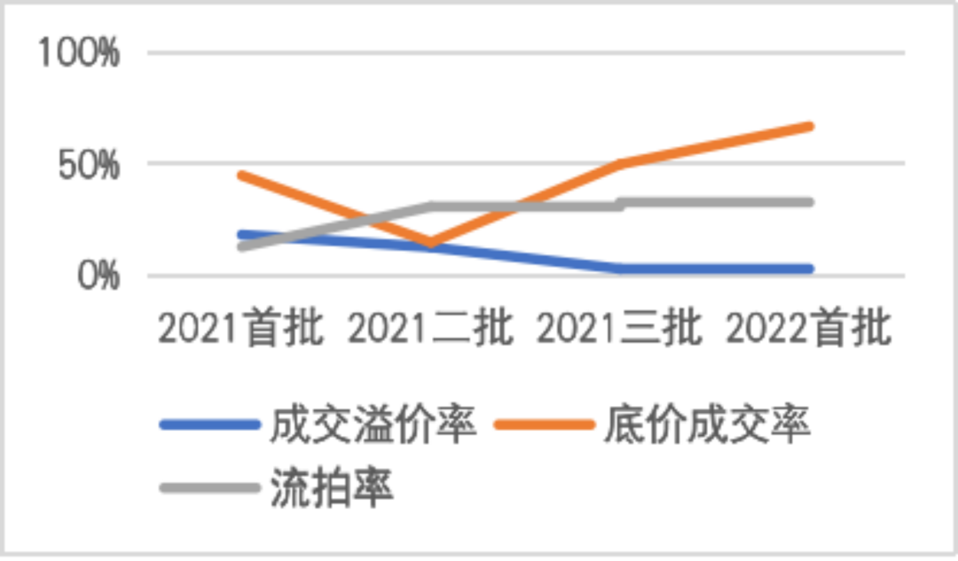 圖2-3:2021-2022合各輪供地成交面積、成交率、底價成交率、流拍率等