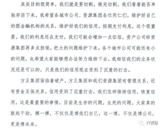 故從資產處置角度來分析,重點可看北大資源集團。然最近又“偶遇吃瓜”,從其內斗檄文中看出,北大資產接管資源集團,將資源集團與方正集團切割的目的以及十分明確,“大難臨頭各自飛”。