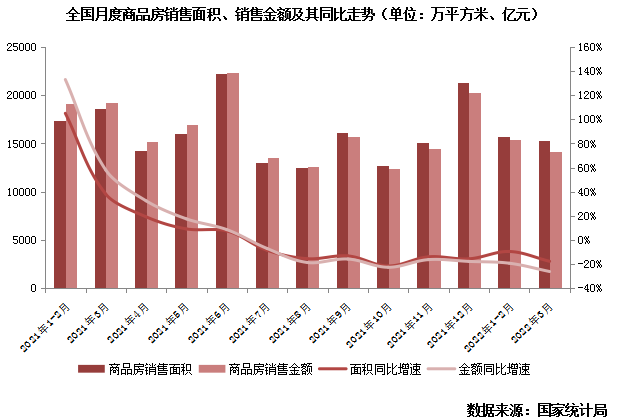單月來看,商品房銷售面積15343萬平方米,同比下降17.7%;商品房銷售額14196億元,下降26.2%;二者降幅較1-2月擴大8.1pcts和6.9pcts。