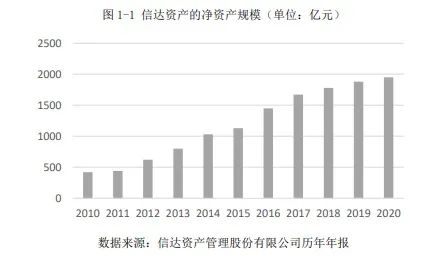 圖1-1顯示,信達資管成立時凈資產為100億,經(jīng)十年發(fā)展至2010年凈資產為425億,至2020年增長至1950億;信達作為樣本反映了四大資管發(fā)展的三個階段:1是政策性資產包階段凈資產穩(wěn)步小幅增長;2是全面商業(yè)化后凈資產快速發(fā)展;3是2018年“回歸主業(yè)”后凈資產增長大幅減緩。