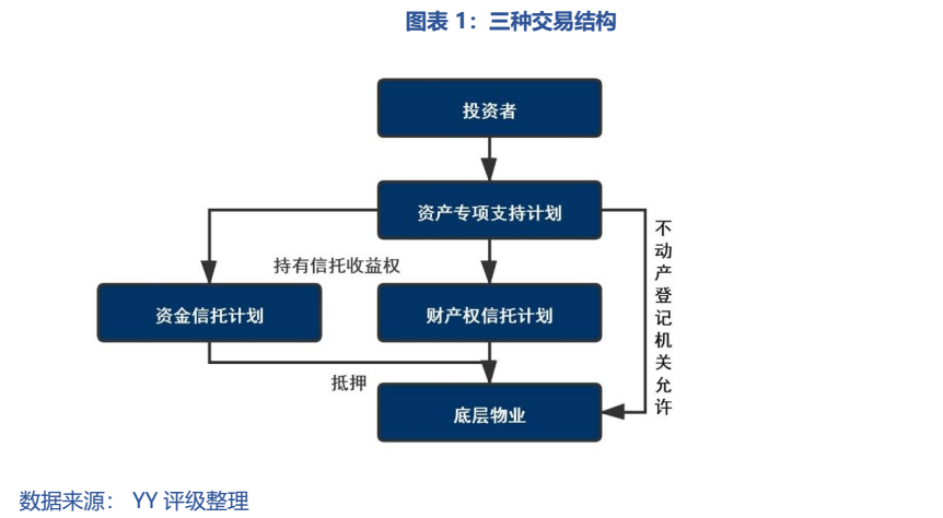 第三種模式剝離的一層SPV為信托計劃,主要由于我國多地的不動產登記機關不接受原銀監(jiān)會體系(如信托公司)外的機構(如證券公司或基金管理公司子公司)進行不動產登記。