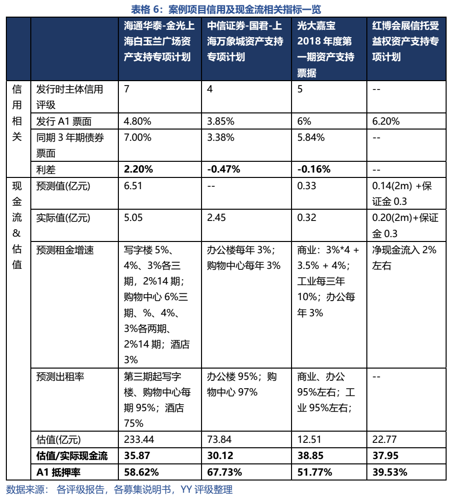 首先,現行的CMBS現金流預測偏重壓力測試輕可解釋性。一般是租期內按租期估算,租期外按2-5%的、逐年遞減的租金增速+95%的出租率進行估計,同時評級報告的基礎資產分析與現金流的相關性有限。