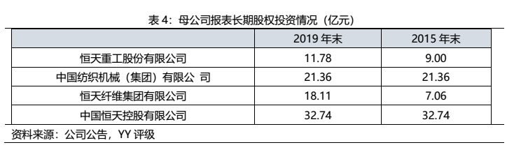 新型纖維材料是公司拓展的新業務,與紡織機械業務有協同效應,但開發成本較大、常規產品產能過剩,盈利能力不穩定,截至2019年末資產規模68.0億元,2019年實現凈利潤凈2.4億元;房地產業務較為穩定,截至2019年末,共有6個在售房地產項目,截至2020年3月末,共有5塊未開發土地,對營業收入形成補充;投資業務方面,恒天投資主要負責為集團內各子公司進行股權投資業務,恒天控股為集團境外融資及資本運作平臺。