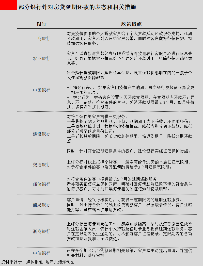 大部分銀行表態,受疫情影響,滿足條件的客戶可申請房貸延期還款。自個人住房貸款出現以來,像這樣規模和級別的集體表態,還是第一次出現。