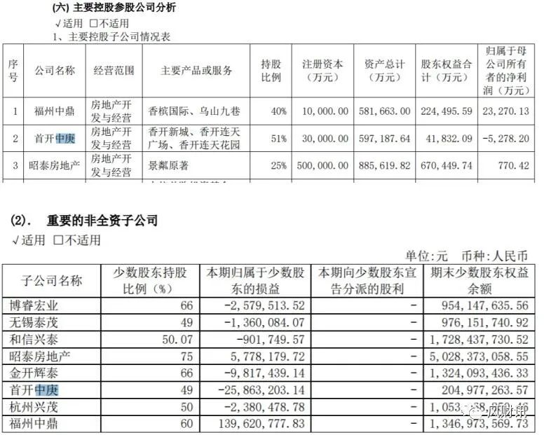 首開股份債券信用評級報告顯示,2020上半年首開中庚公司,歸母凈利潤-5278萬元,少數股東損益為-2586萬元。