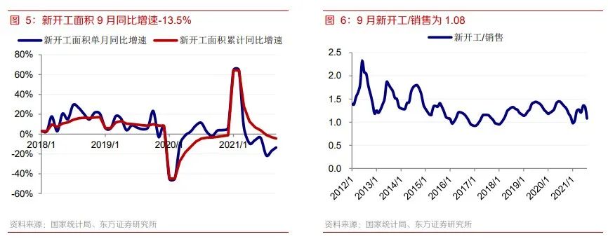 第一,2022年可售的房子面積,可能會有異動。9月房地產(chǎn)新開工面積為17442萬平米,同比下降13.5%,與2019年同期相比,下滑15.2%,累計(jì)新開工15.3億平米,同比增速持續(xù)下滑。