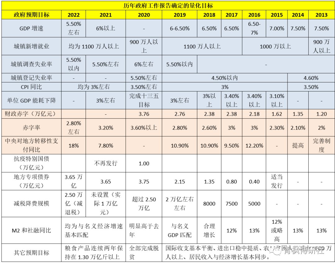 (一)2013年以來歷年政府工作報(bào)告量化目標(biāo)對比表
