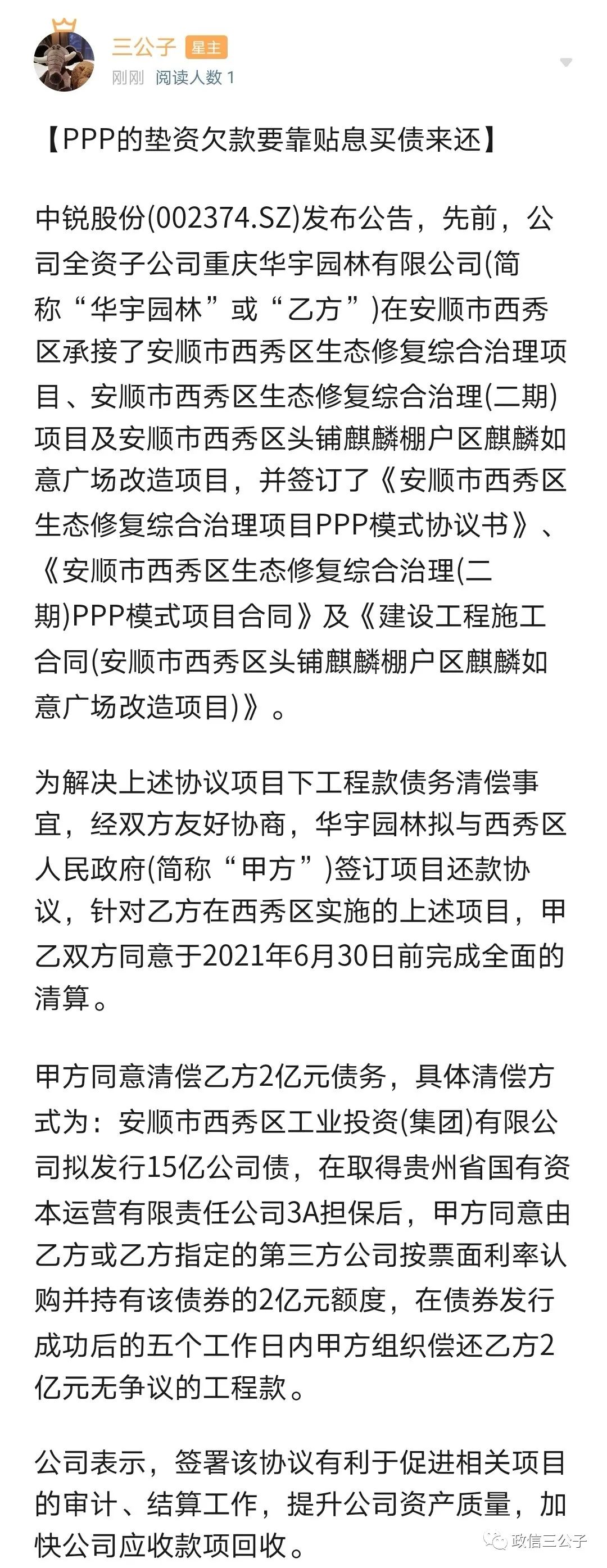 上市公司公告,子公司或指定第三方去買城投公司的債券。城投公司收到錢后,定向支付給上市公司子公司作為拖欠的工程款。