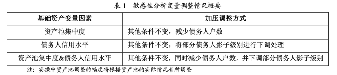 循環購買的交易結構下,跟蹤評級時,如專項計劃仍處于循環購買期,截至跟蹤基準日剩余資產池的質量明顯優于基礎資產合格標準的最低要求的,未來仍將進行多次循環購買的情形下,如后續循環購買基礎資產質量下降,將對優先級證券帶來不利影響,因此我們會補充進行敏感性分析測試。一般情況下,我們將在滿足基礎資產合格標準要求的前提下,從資產池集中度和債務人信用水平兩個角度對資產池進行調整,重新進行三大模型測試,綜合量化測試結果進一步判定剩余優先級證券的信用等級。