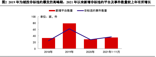 2021年新增城投非標違約平臺及事件數量均較上年有所增加。