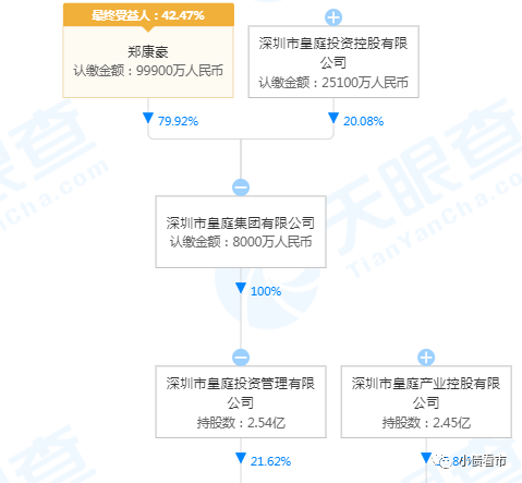 從股權結構看,皇庭國際的第一大股東是皇庭投資,持股比例為21.62%,公司實際控制人為鄭康豪,其合計持有42.47%股份。