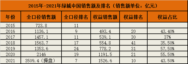 綠城中國的排名,從2016年全口徑排名第9,到2021年第7名,從2016年權益口徑排名20,到2021年首進前10。