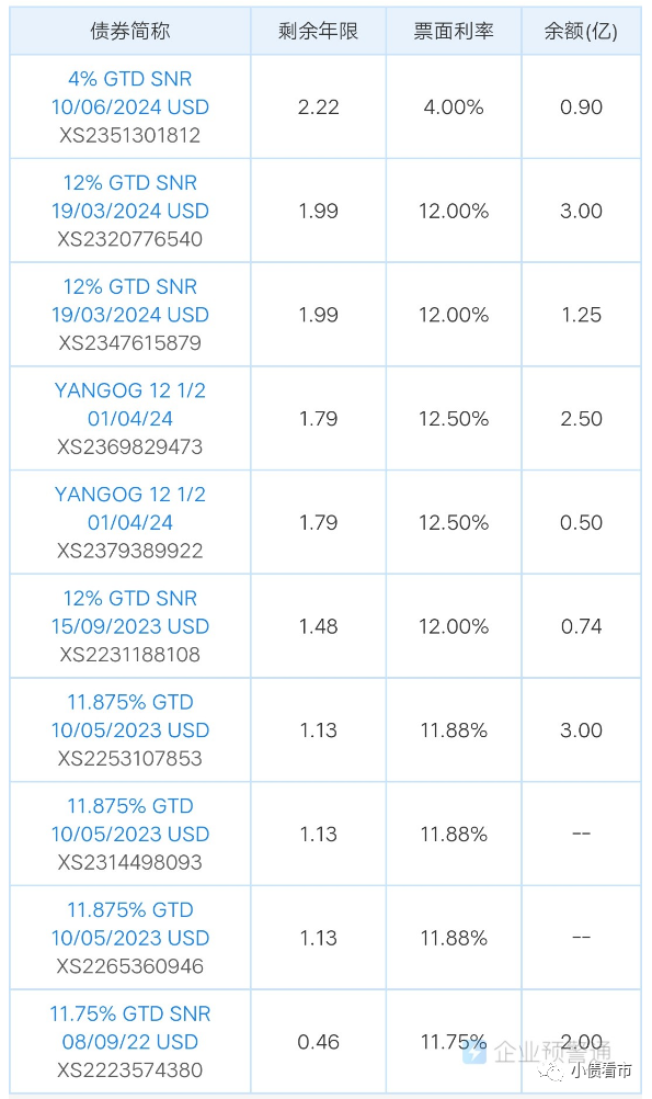 3月11日,陽光集團存續(xù)1.06億美元境外債券“YANGOG 12.5 02/20/22”發(fā)生本息實質(zhì)違約,3億美元“YANGOG 12.5 01/04/24”利息實質(zhì)違約,應(yīng)付利息1875萬美元。