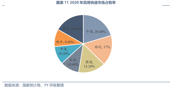 發(fā)展趨勢方面,傳統(tǒng)工業(yè)物流業(yè)務(wù)量上增長空間不大,未來的發(fā)展大方向仍為降本增效(近幾年我國社會物流費(fèi)用/GDP徘徊在14.7%左右,較美國8%還有較大距離),同時(shí)物流企業(yè)通過向供應(yīng)鏈一體化延伸、提供附加服務(wù)來挖掘新的利潤空間,與貿(mào)易、供應(yīng)鏈類企業(yè)的邊界日漸模糊。而居民快遞領(lǐng)域,業(yè)務(wù)量上還有較大增長空間,其需求受電商滲透率、網(wǎng)購人數(shù)占國民比例影響,截至20年末我國電商滲透率24.9%、網(wǎng)購人數(shù)占比55.9%,還有較大增長空間,且網(wǎng)購的品類還在持續(xù)擴(kuò)大。