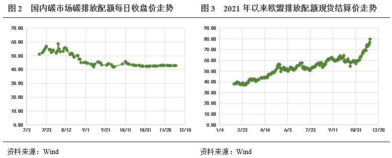 其次,發(fā)展碳排放交易市場,完善碳定價,是“綠色價值”體現(xiàn)的基礎(chǔ)。歐盟碳市場自2005年啟動以來,目前已經(jīng)進入穩(wěn)定運行期,排放配額現(xiàn)貨結(jié)算價在12月初突破79歐元/噸,2021年以來碳價格持續(xù)上漲的原因主要是歐盟制定了更嚴(yán)格的減排目標(biāo),企業(yè)履約剛性強,市場碳配額供給持續(xù)減少,促使碳價上升。國內(nèi)全國碳排放權(quán)交易于2021年7月16日開市,目前僅發(fā)電行業(yè)參與、交易產(chǎn)品僅碳排放配額、交易主體僅限發(fā)電企業(yè),整體配額總量較寬裕,導(dǎo)致國內(nèi)碳價目前處于地位,12月初為43元/噸左右。隨著全國碳市場交易機制不斷完善、碳減排目標(biāo)控制趨于嚴(yán)格后逐步收緊配額總量,未來國內(nèi)碳價有較大的上升空間。一旦國內(nèi)形成穩(wěn)定準(zhǔn)確的碳市場定價,有助于致力于綠色發(fā)展的企業(yè)貨幣化環(huán)境效益,資本就會轉(zhuǎn)向這些企業(yè),助力綠色債券“綠色價值”的體現(xiàn)。