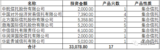 而讓債券民工很意外的是,這13家機(jī)構(gòu)名單中,共有7家信托公司,涉及了17只集合信托產(chǎn)品!