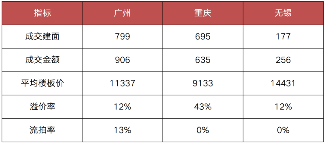 圖:廣州、無錫、重慶已成交地塊平均樓板價