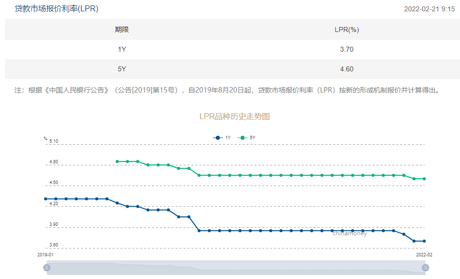 而在2021年12月和2022年1月份連續(xù)兩次LPR報(bào)價(jià)中,1年期連降,5年期降1次,以上LPR合計(jì)分別下降了15個(gè)基點(diǎn)和5個(gè)基點(diǎn)。
