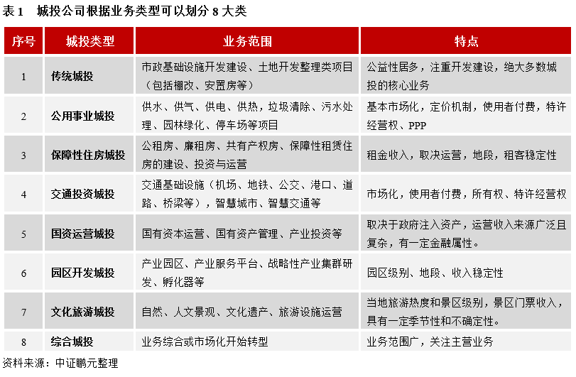 (2)篩選滿足參與公募REITs的城投主體:根據城投公司業務可以劃分8類城投主體;參照試點范圍行業和發行要求,篩選出較大可能滿足參與公募REITs的5類城投主體:交通投資城投、公用事業城投、園區開發城投、保障性住房城投、文化旅游城投。