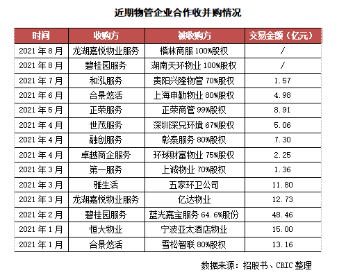 一方面,行業(yè)競爭加劇,規(guī)模向頭部企業(yè)集中將成為一種趨勢。近幾年物管上市潮涌現(xiàn),但上市后物管企業(yè)卻呈現(xiàn)兩極化的發(fā)展,2020年碧桂園服務(wù)以156億元營收穩(wěn)居上市物企首位,而營收最低的為興業(yè)物聯(lián),全年營收僅有2.1億元,行業(yè)差距逐漸被拉大。隨著物管賽道競爭加劇,行業(yè)“大魚吃小魚”將成為一種常態(tài),此前便有龍湖收購億達,碧桂園收購藍光嘉寶,規(guī)模向頭部企業(yè)集中將成為一種趨勢,陽光智博戰(zhàn)略換股萬物云也為物業(yè)行業(yè)整合提供了一個新思路。