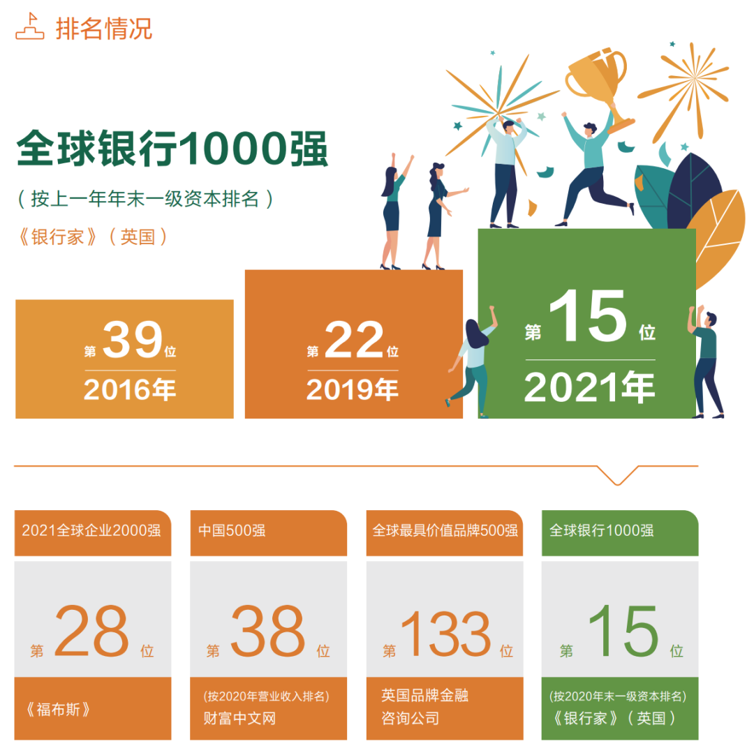 回歸A股兩年多,郵儲(chǔ)銀行市值居上市銀行前列;國(guó)際三大評(píng)級(jí)機(jī)構(gòu)持續(xù)給予其國(guó)內(nèi)商業(yè)銀行最優(yōu)信用評(píng)級(jí);在英國(guó)《銀行家》“全球銀行1000強(qiáng)”排名較上年提升7個(gè)位次升至第15位;2021年獲得明晟公司(MSCI)ESG評(píng)級(jí)A級(jí),在中國(guó)銀行業(yè)處于領(lǐng)先水平。