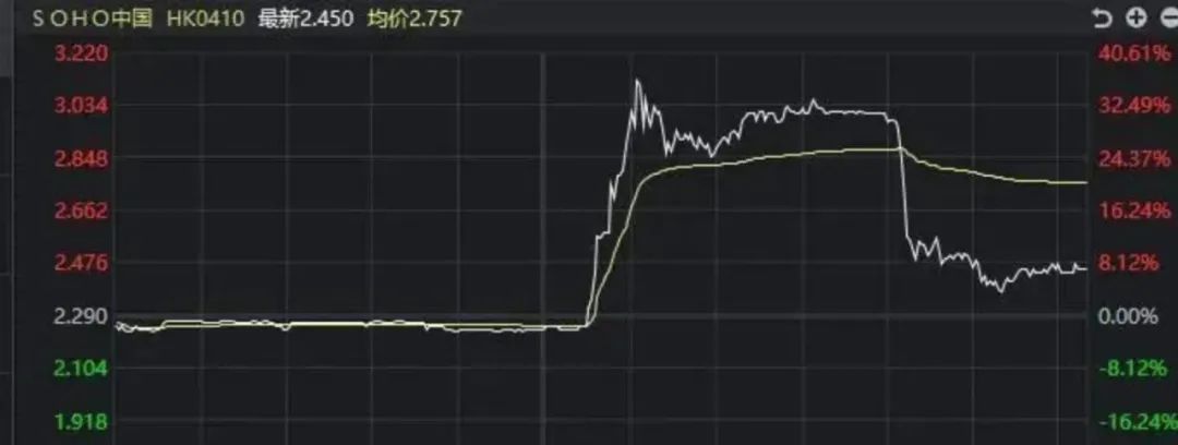 消息甫出,SOHO中國公司股價跳漲40%。