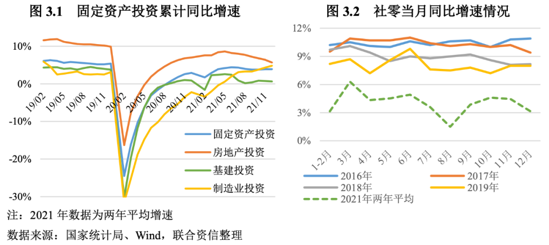 2022年雖然面臨三重壓力,但在政府穩(wěn)增長強力托底政策的作用下,預期增長目標的實現(xiàn)應該沒有大的問題。實現(xiàn)今年目標,最大的困難是克服或逆轉去年下半年以來的過快下行趨勢。去年下半年以來的過快下行,主要的原因在于高基數(shù)效應的作用,投資增速下滑(主要是房地產(chǎn)和基建投資),消費受疫情多點頻繁復發(fā)而受到嚴重抑制,以及能耗雙控等政策的嚴厲執(zhí)行導致的限電限產(chǎn)、部分行業(yè)整頓等。我們觀察到,去年四季度以來,政府開始政策糾偏,各行業(yè)逐步步入常態(tài)發(fā)展,過激政策對經(jīng)濟的負面影響逐漸消失。