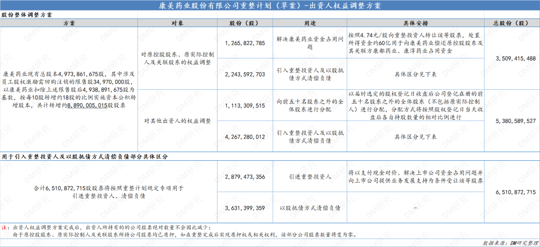 原標(biāo)題: DM研究 | 違約主體重整梳理:康美藥業(yè)重整草案出爐,股抵債價(jià)值“虛高”,清償率存疑