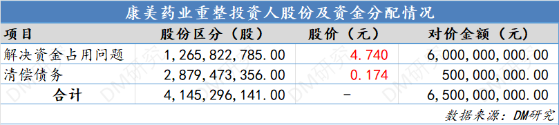 康美重整投資人為廣藥集團(tuán),根據(jù)《重整計(jì)劃(草案)》,應(yīng)受讓4,145,296,141股轉(zhuǎn)增股票,占出資人權(quán)益調(diào)整后總股票數(shù)量的29.90%,并支付股票受讓總價(jià)款65億元。其中明確指出,1,265,822,785股專項(xiàng)用于解決康美藥業(yè)資金占用問題,按照4.74元/股向康美藥業(yè)的重整投資人轉(zhuǎn)讓該股票,處置所得資金60億元用于向康美藥業(yè)償還原控股股東及其關(guān)聯(lián)方康都藥業(yè)、康淳藥業(yè)占用資金。但剩余用于債務(wù)清償?shù)?,879,473,356股僅對應(yīng)5億元,即每股價(jià)格約為0.174元,與前述4.74元/股相去甚遠(yuǎn),股票定價(jià)存在明顯不合理,對投資人利益有一定的損害。