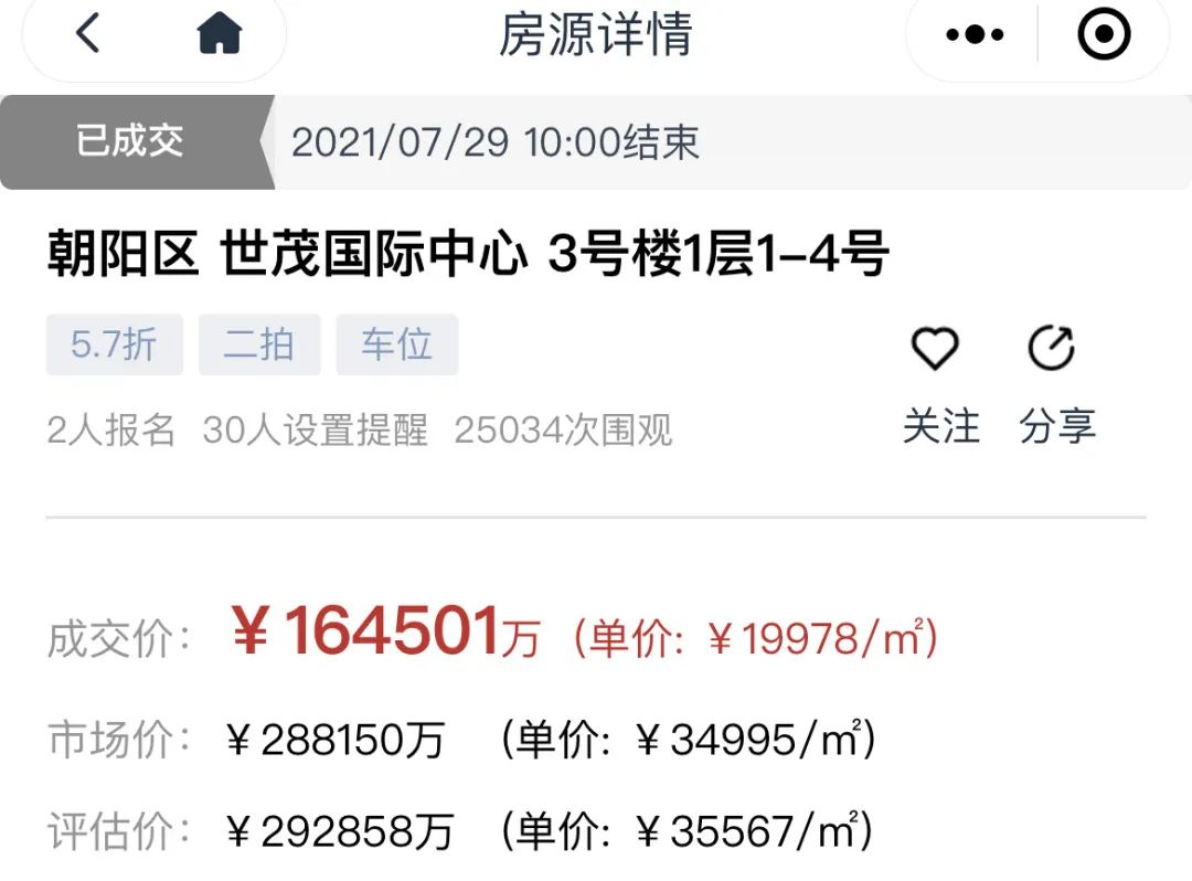 另外,除了這棟大廈之外,賈躍亭旗下還有一處房產(chǎn)此前剛剛被拍賣,該房產(chǎn)就是位于北京市朝陽區(qū)工體北路13號院3號樓1-4層及5幢不動產(chǎn)(世茂工三商場),這是賈躍亭在國內(nèi)最值錢的資產(chǎn),最終以16.45億成交。對比當(dāng)時許榮茂賣給賈躍亭的價格,則已接近腰斬。