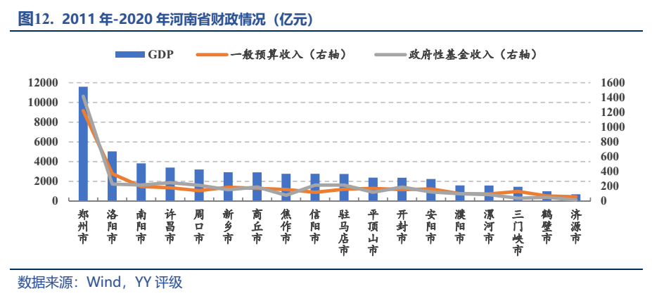 鄭州市級平臺雖然存在一定的股權關系,但在人財物方面相對獨立,金融機構也是各自授信,存在一定安全邊際;園區(qū)類平臺,航空港區(qū)定位較高,近幾年經濟發(fā)展迅速也累積了大量的債務,但“富士康”的標簽也是其產業(yè)仍在低端加工的表現(xiàn),產業(yè)結構深層次的困惑是這位背負著中原崛起城市的破局關鍵點。此外,資本市場信心恢復仍需要時日,可能需要區(qū)域內暫時信貸支持和過渡。