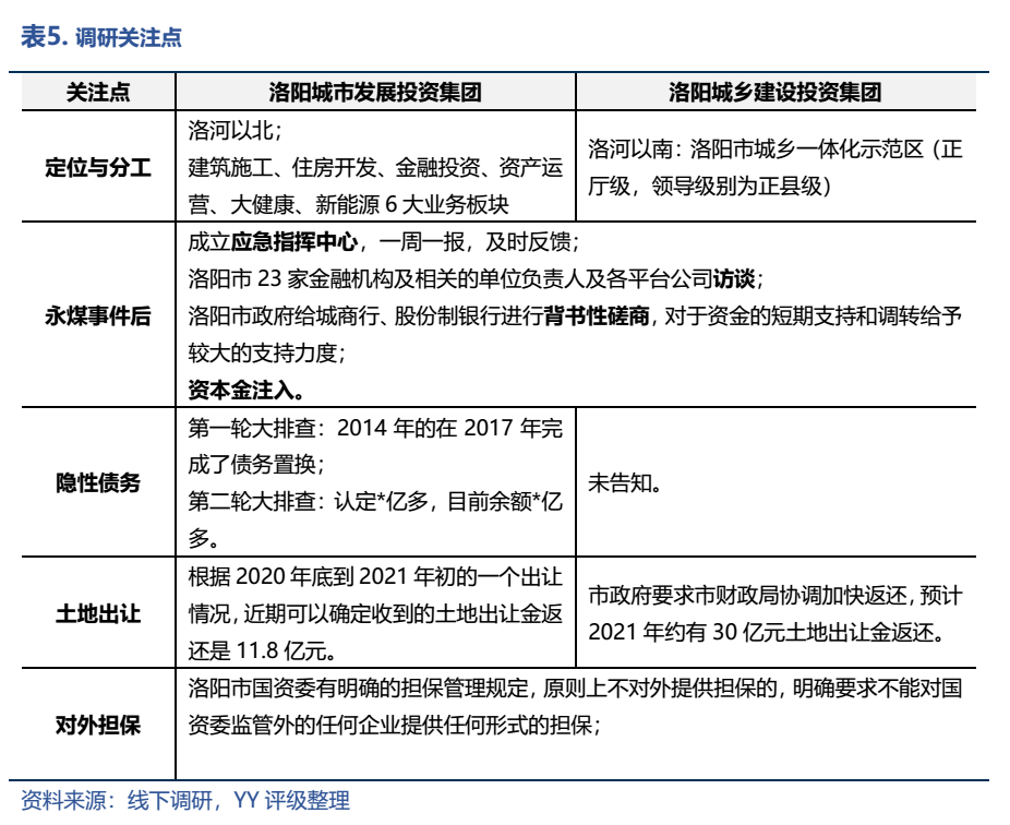 本次調研了洛陽的兩大市級平臺:洛陽城市發(fā)展投資集團和洛陽城鄉(xiāng)建設投資集團。兩家平臺資質相對較好,市場認可程度尚可。