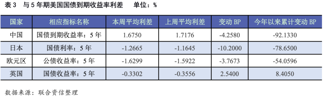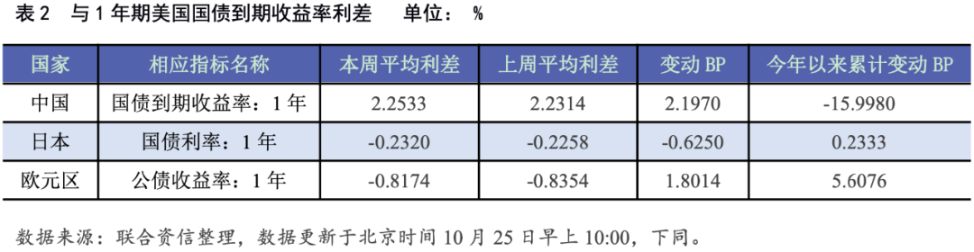 各期美債收益率全面上漲,各主要經(jīng)濟(jì)體國(guó)債與美債收益率利差走勢(shì)不一