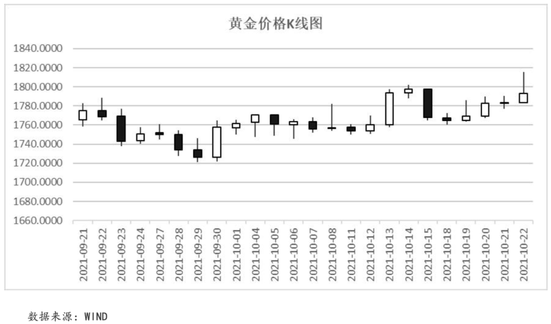 本周,美國(guó)“褐皮書”的公布顯示出,美國(guó)經(jīng)濟(jì)增速有所放緩的同時(shí),通脹問題日益嚴(yán)峻。供應(yīng)鏈的中斷、原材料價(jià)格上漲、能源價(jià)格上漲和勞動(dòng)力的恢復(fù)緩慢都讓人們意識(shí)到這些共同助推高通脹的因素在短期內(nèi)并不能有所改善。高通脹的持續(xù)拉升了市場(chǎng)避險(xiǎn)情緒,黃金作為抗通脹的主要避險(xiǎn)工具,因此金價(jià)走高。截至本周五,COMEX黃金價(jià)格收于1,793.10美元/盎司,周內(nèi)累計(jì)收漲1.45%,連續(xù)第二周上漲。
