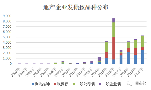 首先來看看地產。2015年公司債新政開始落地實施,交易所私募債和公司債的發行人大擴容時,非金融企業債務融資工具和企業債按照國家宏觀調控政策,對地產企業的融資需求保持克制。交易所敏銳把握到了這個群體的融資需求,為地產企業敞開融資大門。