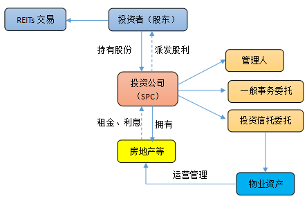 公司型REITs是指通過設立以房產投資為經營范圍的公司,將公司股份出售給投資人,公司再將收益以股利形式分配給投資人。