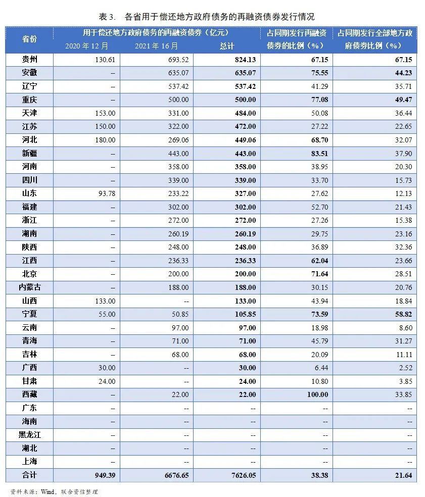 2020年12月,部分省份發行的地方政府再融資債券募集資金用途首次由“償還到期的地方政府債券”調整為“償還地方政府存量債務”,拉開了再融資債券化解部分區域地方政府隱性債務的序幕。