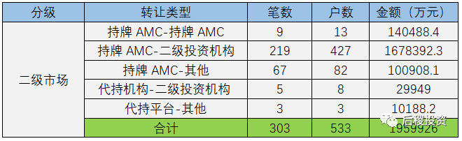 2、二級投資機構債權出讓情況