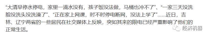 由于早有預(yù)期,對(duì)于近期的各地停電新聞,我一開(kāi)始并不是很在意的,但很快wx上各種圖片、文章鋪天蓋地,嚴(yán)重程度超過(guò)預(yù)期,比如紅綠燈因停電而停擺,比如停水停電,家里沒(méi)法做飯、洗澡、上網(wǎng)課的。更有極端的情況,比如
