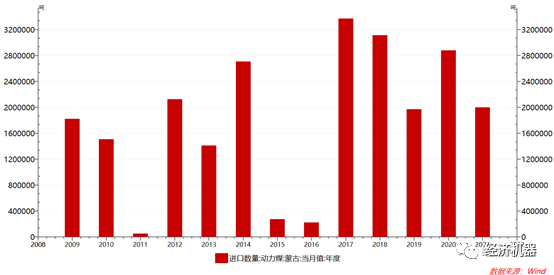 圖10:我國(guó)從蒙古進(jìn)口動(dòng)力煤