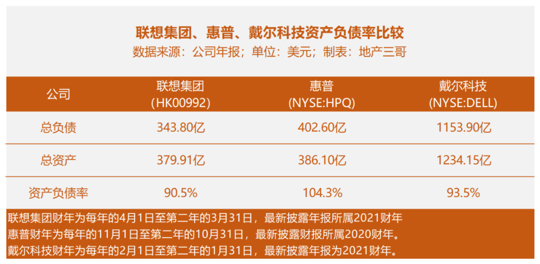 三家都是同行,橫向比較,聯想集團高嗎?