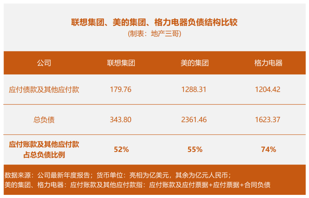 照這個邏輯,美的、格力這些經營優秀的公司都應該立馬還錢,看看它們的負債結構比較: