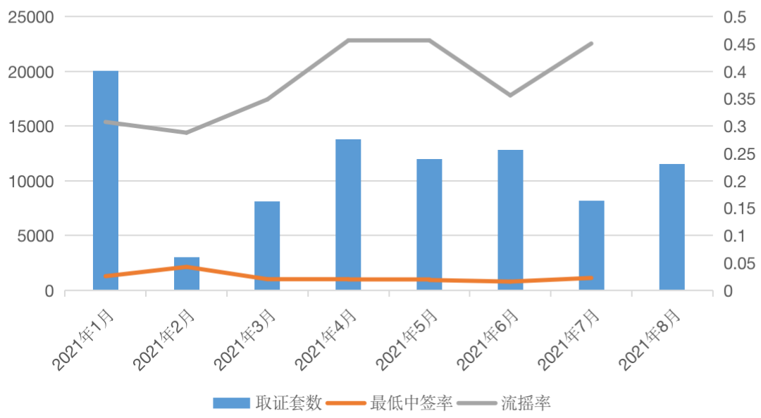 一直以來,杭州樓市打新盛行,在一、二手價格倒掛,買到即賺到心理預期之下,杭州似乎已進入全民盲目搖號狀態,即便是在“1.27”新政(中簽率低于10%的房源實行限售5年)后,打新市場熱度依舊延續。據統計,2021年上半年杭州約有57個樓盤、21759套房源限售5年,最低中簽率僅為1.58%。