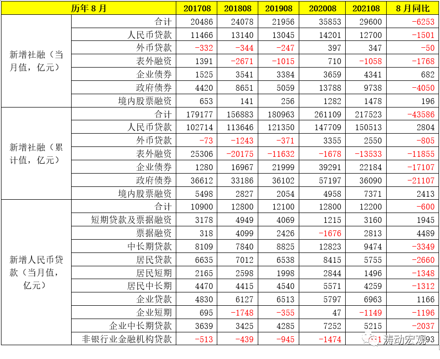 2、受房地產管控力度持續加強影響,以個人按揭貸款為主的居民中長期貸款依然偏弱。今年8月居民中長期貸款新增0.43萬億,創2016年以來歷年8月新低,同比少增0.13萬億。我們看到,今年7月和8月的當月新居民中長期貸款均創2016年以來新低,表明房地產政策在7-8月的影響有強化態勢。