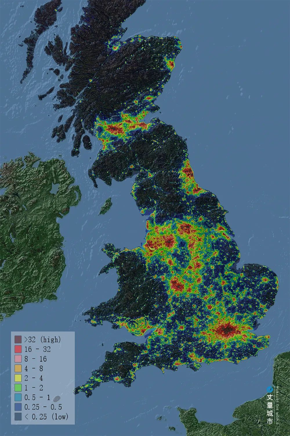 ▼ CPRE Maps的英國夜間燈光大數(shù)據(jù)地圖助力鄉(xiāng)村發(fā)展