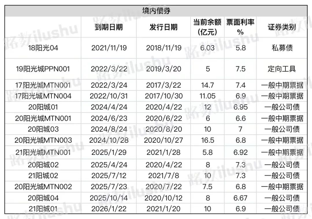 其中有:一只由“中山證券-陽光城集團購房尾款資產支持專項計劃”發起的ABS產品“20陽光優”,回售到期。一筆為美元債“陽光城10% N20230212“,也是回售到期。另外還有一筆境內債“18陽光04”和一筆供應鏈。