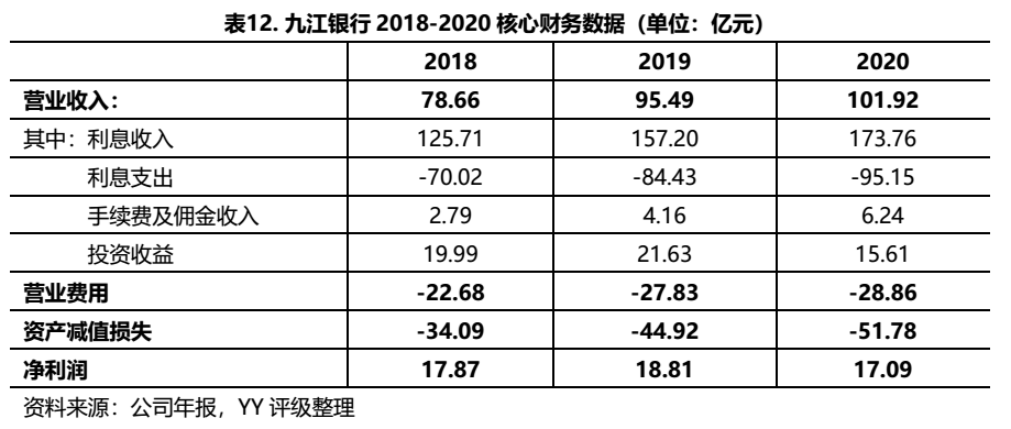 2020年九江銀行凈利潤出現了下滑,主要原因來自于營收增速下滑以及資產減值損失較高,因此需要關注兩個風險點: