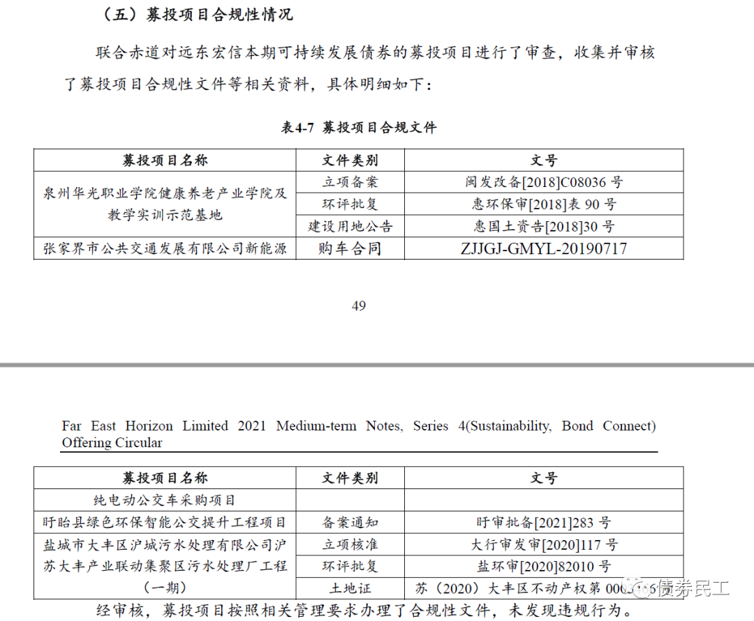 特別需要關注的是,本期債券由聯合赤道對募投項目的合規性進行了專門的審查,確保項目的合規性不存在違規行為。由專門的中介機構對募投項目合規性發表意見,這在國內信用債券市場還是非常罕見的。